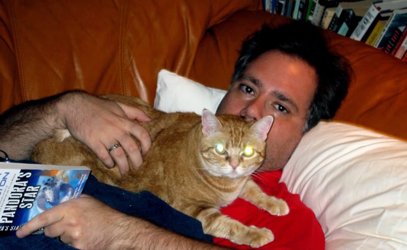 So without further ado, a picture of your host hard at work on the next book review, aided by Turbo the Cat.