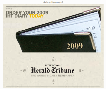 This house ad showed up on the International Herald Tribune’s home page today. That’s right, the IHT seems to believe its target audience is people who still use paper diaries to stay organized.