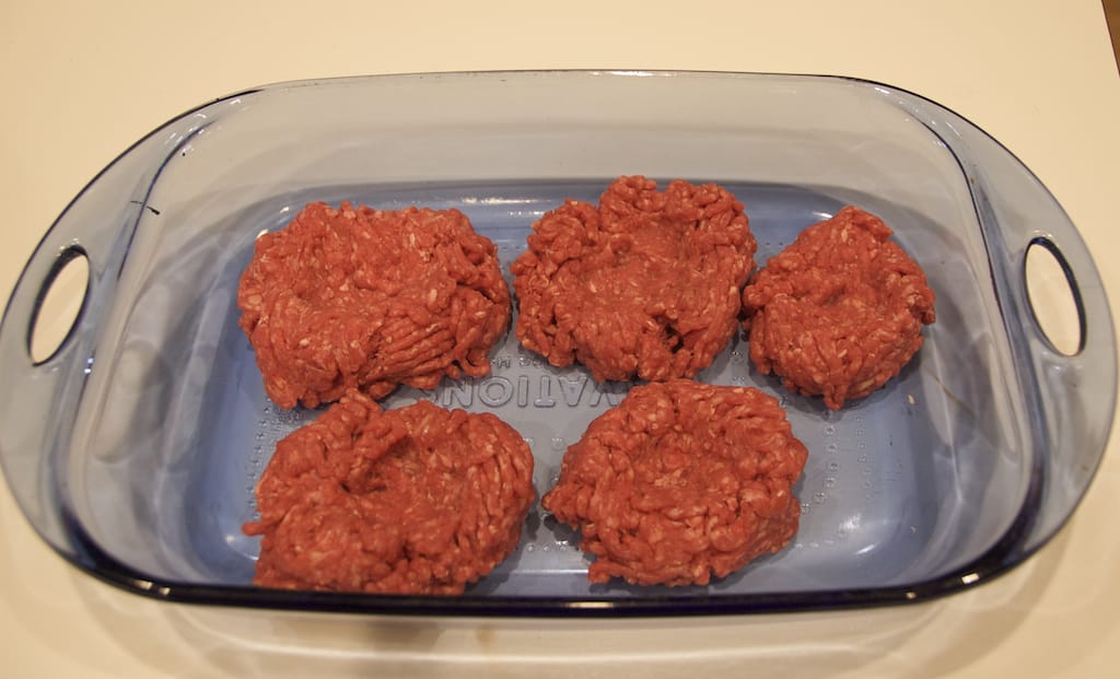 Form into patties. You don’t need eggs or flour or anything. Just make patties. The key is to handle the meat as little as possible. Trust me, they’ll stick together.