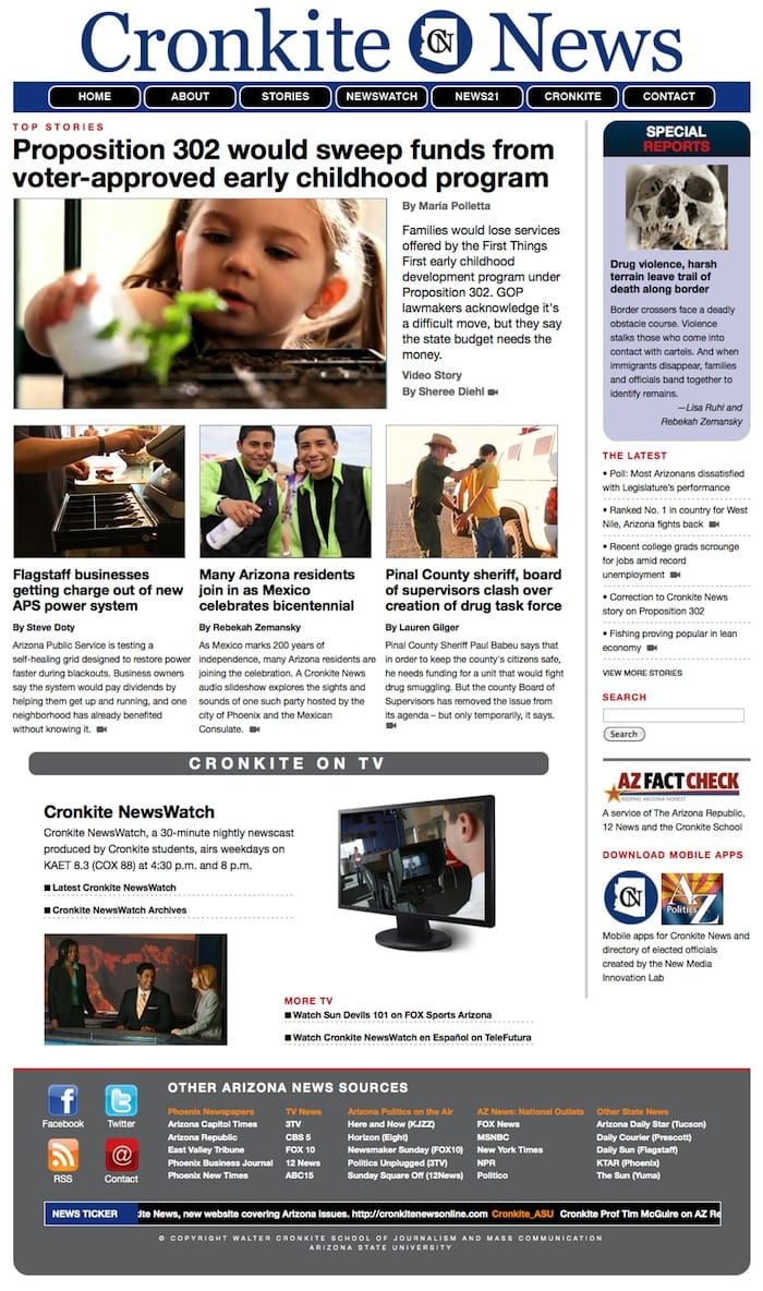 At work we recently launched a website providing news on Arizona public policy issues in text, video and photo format called Cronkite News. I thought it might be helpful to post some thoughts on how we built the site and some of the challenges we found.