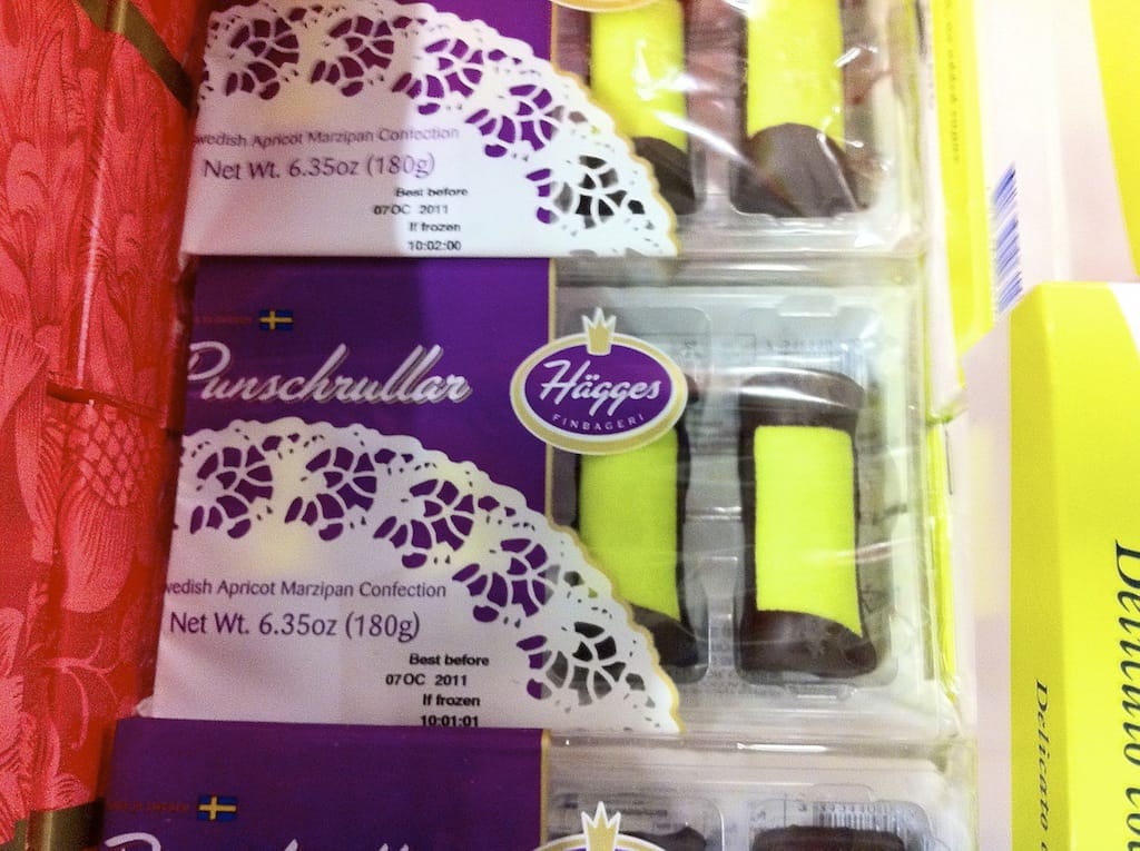 “Punschrullar” is the official name, but nobody calls them that. In Sweden they’re referred to as “dammsugare” (vacuum cleaners) because of the shape—like an old-style vacuum cleaner. Marzipan and apricot. Is it good? Unless you hate sweets and marzipan, yes indeedy. The vacuum cleaners are sublime with coffee; Swedish people love coffee, so the vacuum cleaners are a perennial favorite.