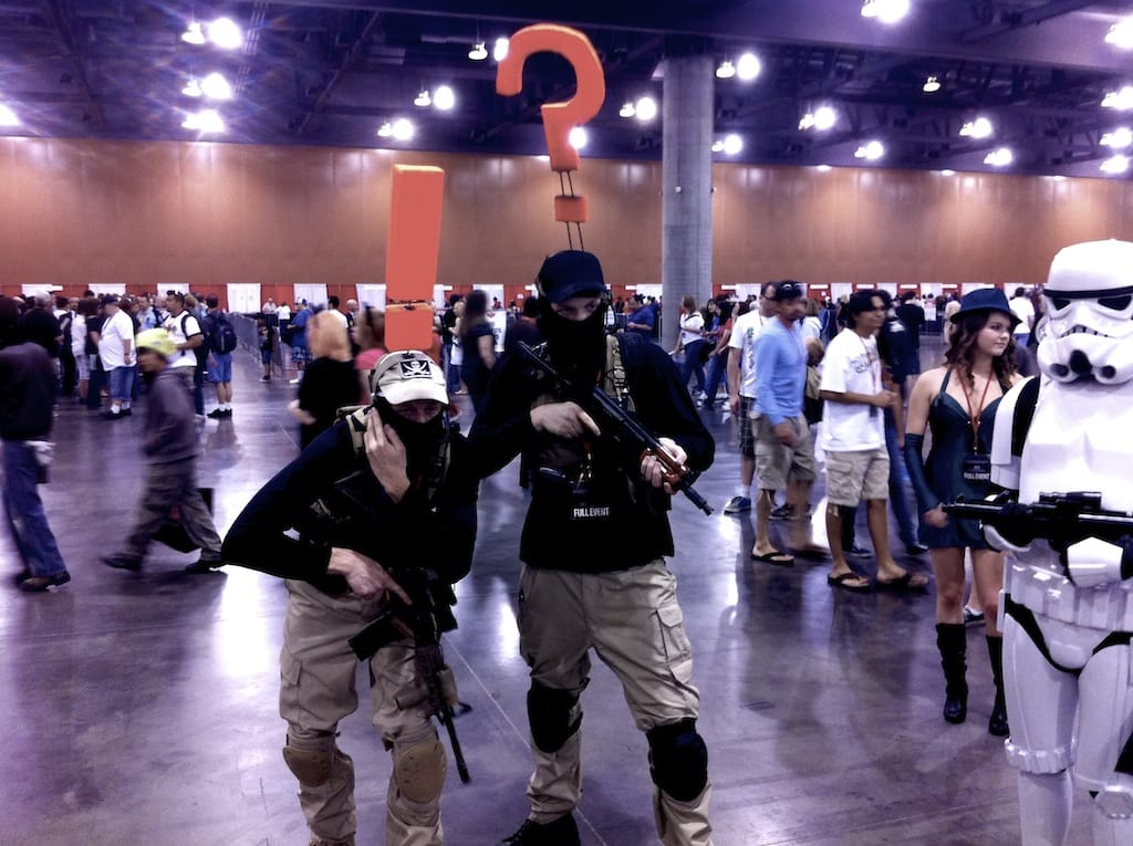 Next, the anime cosplay people. You know, just rock on. Do your thing. Not being into anime myself, I had no idea who anybody was supposed to be. Which doesn’t matter: As long as you put some effort into your costume, I’m all for it. Rock on with your pink wig and spandex uniform. Just keep it real, for whatever value of real you’re operating on.